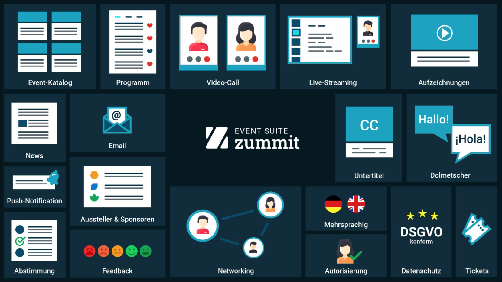 Ein „One Stop Shop“ über den Nutzungsanalysen, Networking, CRM-Funktionen, Einbindung in Kundenwebseiten, und Bereitstellung von Web- und Kunden-Apps mit wenigen Klicks auch für den ungeschulten Anwender machbar sind. Zudem wird eine White-Label Variante für Agenturen, Integratoren, Verbände und Vereine angeboten.